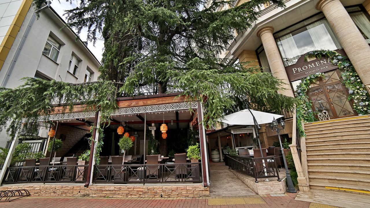 Когда за окном тепло, гораздо приятнее находиться на воздухе. И не только чтобы прогуляться, но и пообедать или поужинать. Для этого у семейного ресторана Promenad есть своя веранда с выходом на улицу.