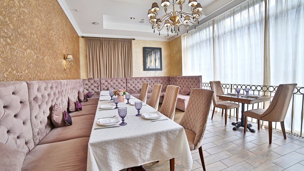 У нас есть Wi-Fi, работает доставка блюд в офис или на дом, доступны парковка, детская комната и банкетный зал - всё к вашим услугам.
